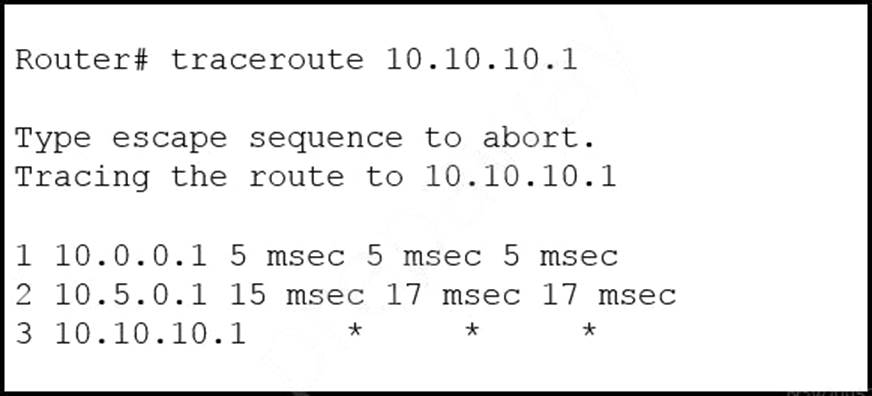 An engineer is troubleshooting a connectivity issue and executes a traceoute.