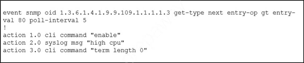 - C . action 4.0 ens-event “show process cpu sorted | append flash:high-cpu-file”