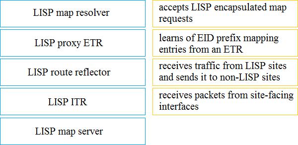 Drag and drop the LISP components from the left onto the function they perform on the right. Not all options are used.