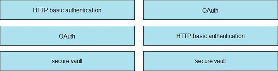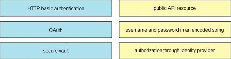 Drag and drop the REST API authentication methods from the left onto their descriptions on the right.