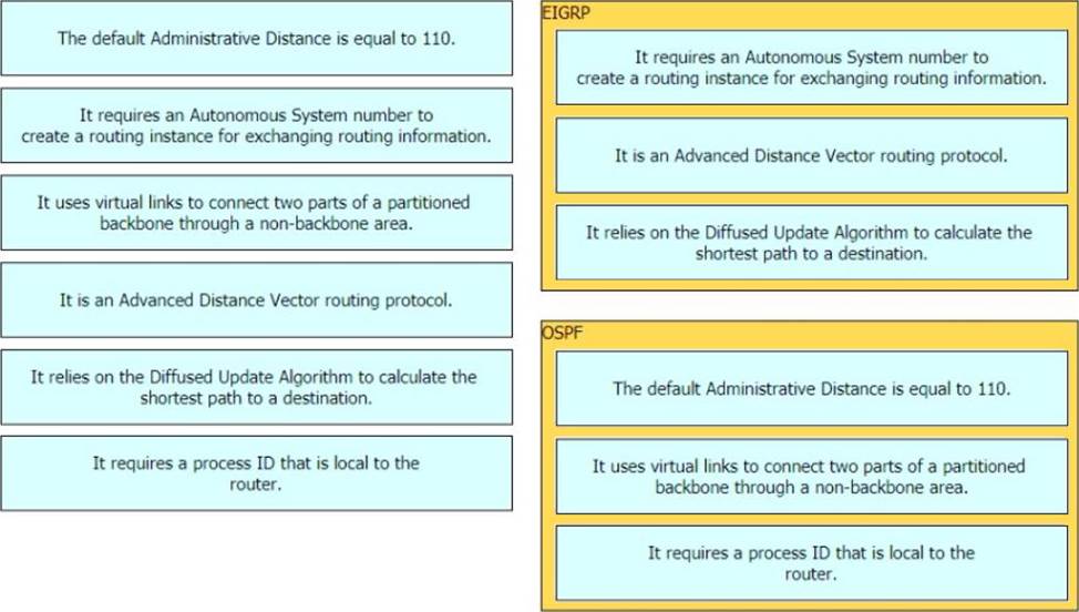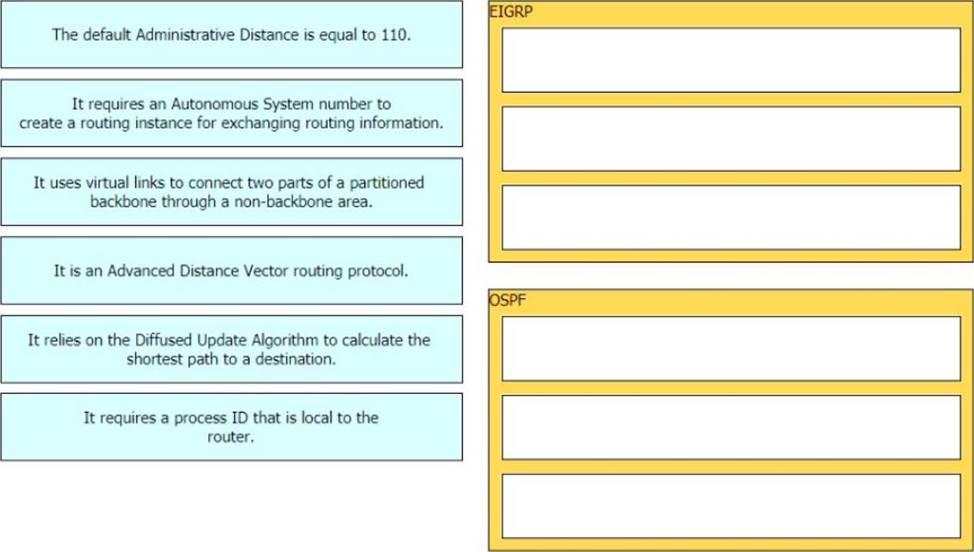 Drag and drop the characteristics from the left onto the routing protocols they describe on the right.
