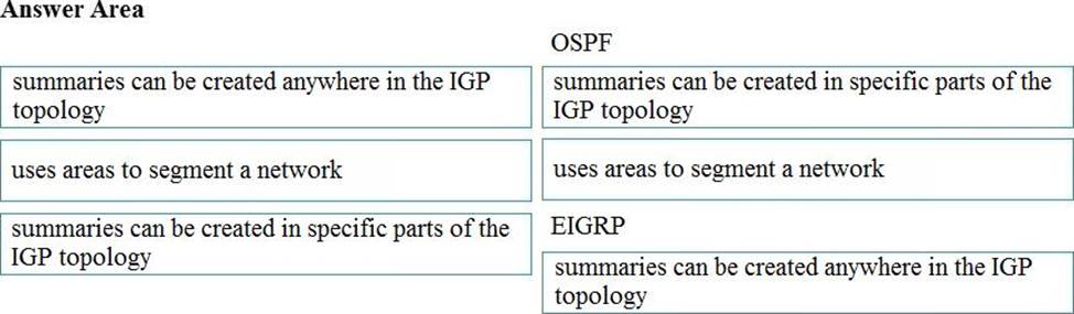 Drag and drop the descriptions from the left onto the routing protocol they describe on the right.