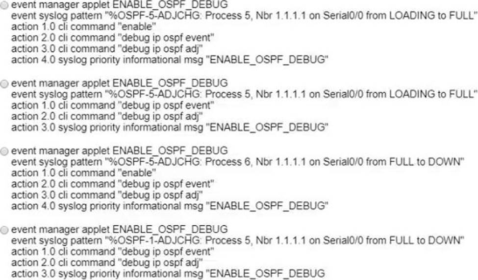 An engineer must create an EEM script to enable OSPF debugging in the event the OSPF neighborship goes down.
