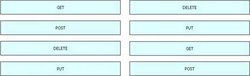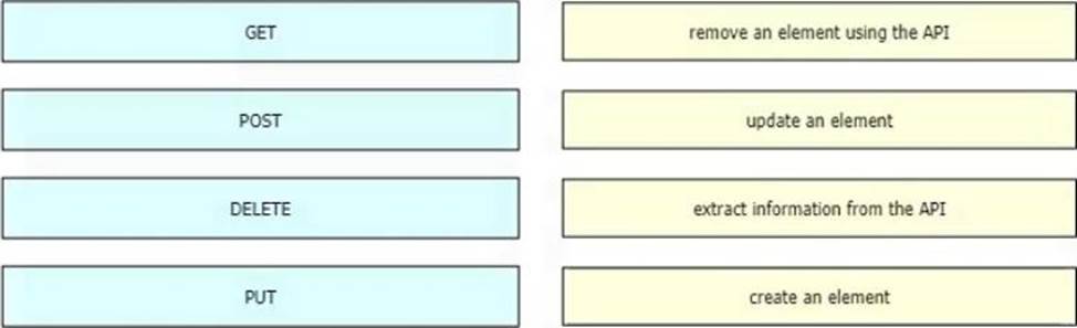 An engineer is working with the Cisco DNA Center API Drag and drop the methods from the left onto the actions that they are used for on the right.