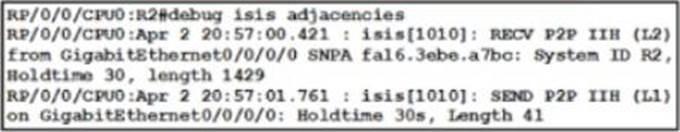 A network operator is attempting to configure an IS-IS adjacency between two routers, but the adjacency cannot be established. To troubleshoot the problem, the operator collects this debugging output.