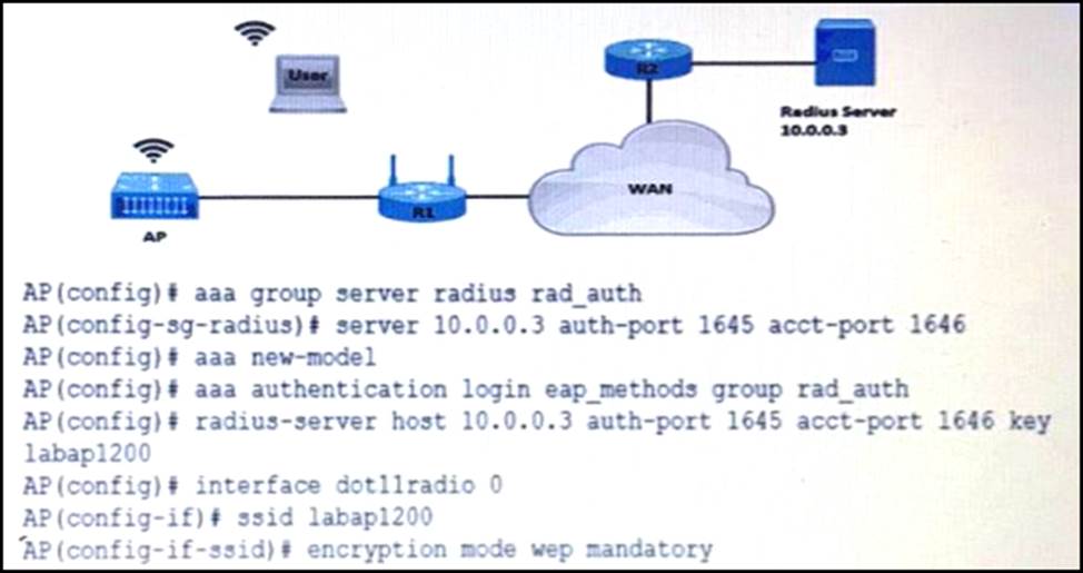 - A . AP(config-if-ssid)# authentication open wep wep_methods