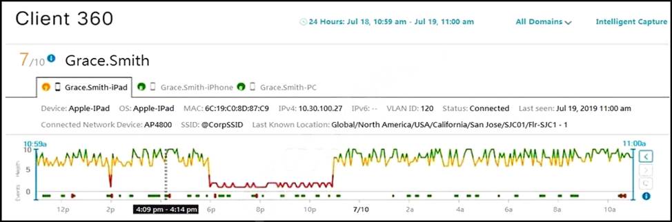 Cisco DNA Center has obtained the username of the client and the multiple devices that the client is using on the network.