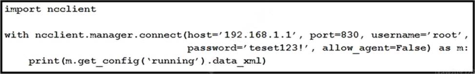 - D . Use the JSON library to parse the data returned by the NETCONF server for the interface’s configuration