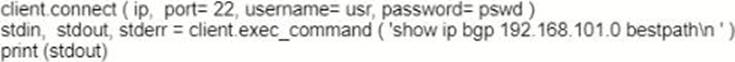 - C . connects to a Cisco device using SSH and exports the BGP table for the prefix