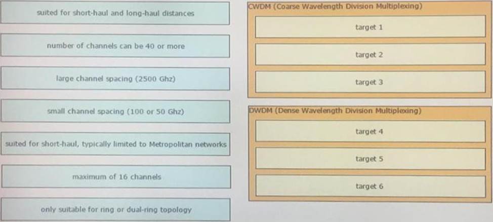 Drag and drop the optical technology design characteristics on the left to the correct optical technologies on the right. Not all options are used