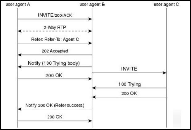 In a SIP REFER-based call transfer, which SIP message is being used by the recipient to notify the originator that the final recipient was successfully contacted?