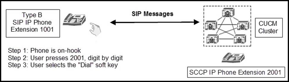 - C . The SIP IP phone will wait for the interdigit timer to expire, or for the Dial softkey to be selected before sending all digits to Cisco Unified Communications Manager in a SIP INVITE message.