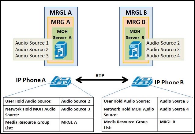 - A . IP Phone A receives audio source 2 from MOH Server A.
