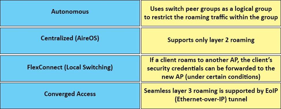 Drag and drop the wireless deployment modes on the left to the corresponding roaming description on the right.