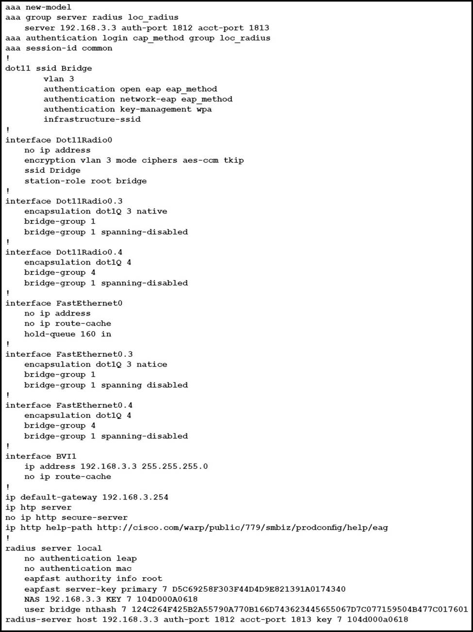 Which three statements about this extract of the configuration of an autonomous AP are true? (Choose three.)
