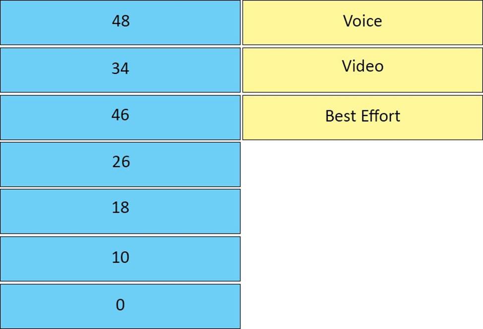 Drag and drop the Cisco AVVID IP DSCP values on the left to its matching traffic type on the right. Not all options are used.