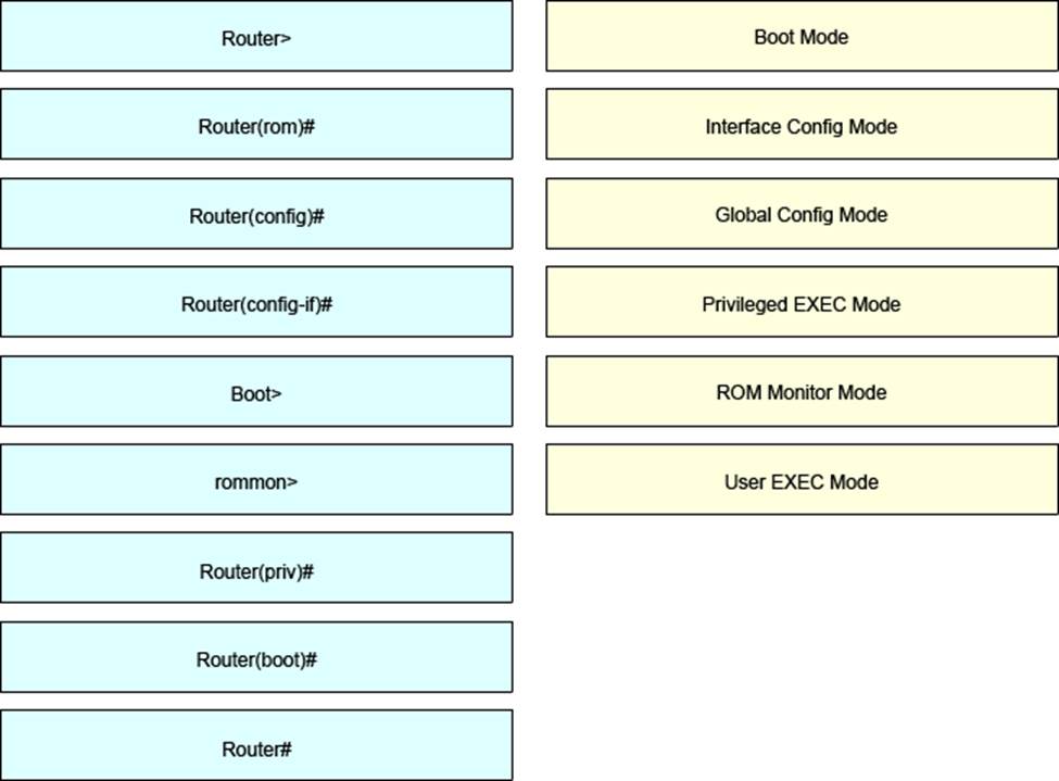 Match the prompt on the left to the operational mode on the right. Not all prompts will be used.