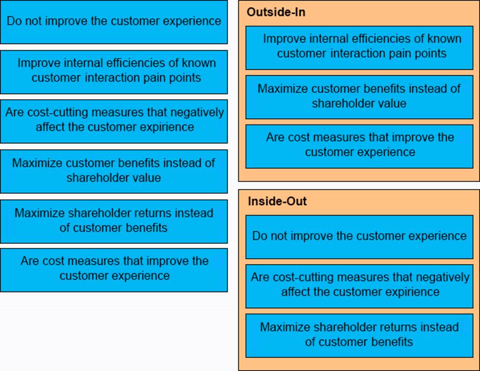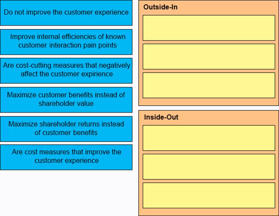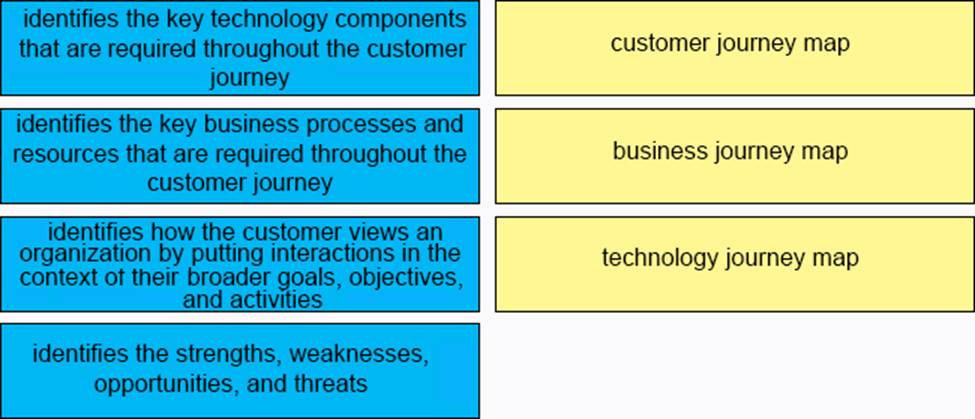 You are developing a customer journey map. Drag and drop each customer touch point on the left to the correct touch point type on the right.