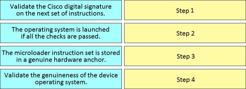Drag and drop the mechanisms of Cisco Secure Boot from the left into the correct order on the right
