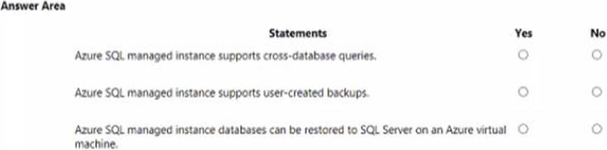 For each of the following statements, select Yes if the statement is true. Otherwise, select No. NOTE: Each correct selection is worth one point.