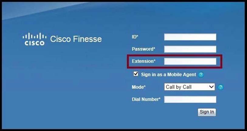 In Cisco Finesse 10.0(x), when agents login into the desktop as a Mobile Agent, which number is used in the highlighted Extension field?