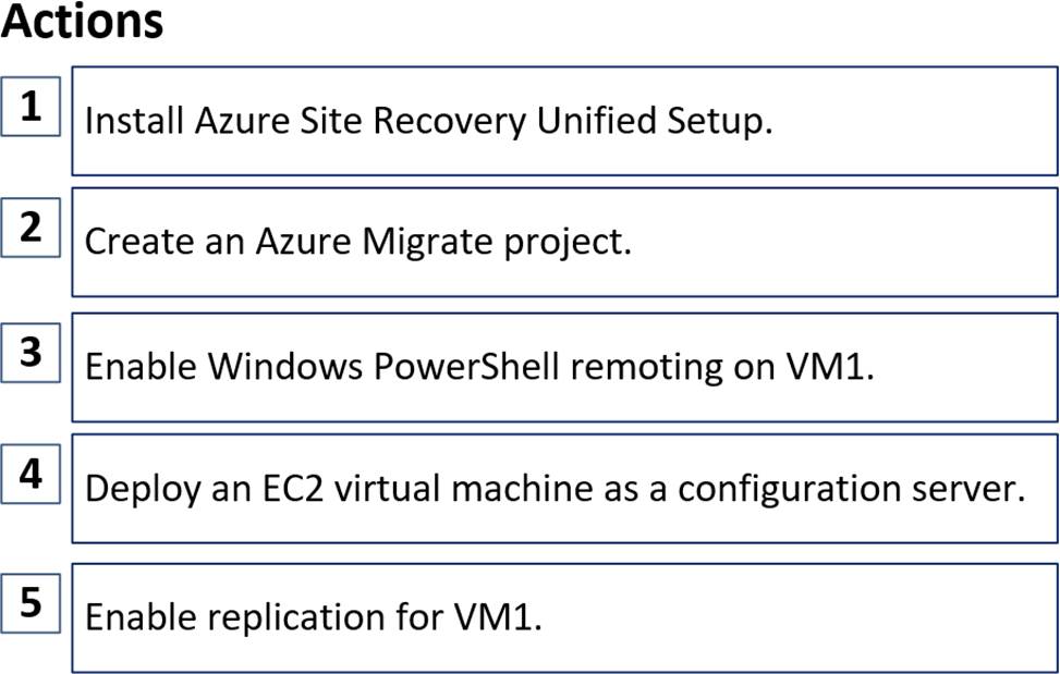 You have an Amazon Web Services (AWS) EC2 virtual machine named VM1 that runs Windows Server.