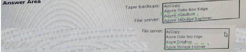 A Windows file server has BMP images of checks used by SAP Finance. There are 9 IB of images. You need to recommend a method to migrate the images and the tape backups to Azure. The solution must maintain continuous replication of the images.