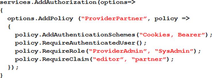 – Limit access to the Manage action of the controller to users with an editor claim of partner who are also members of the SysAdmin role.