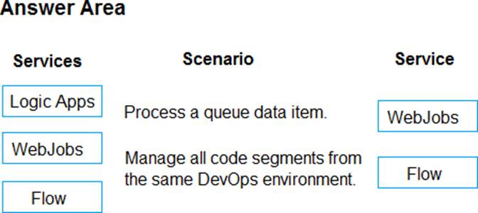 Which service should you use for each scenario? To answer, drag the appropriate services to the correct scenarios. Each service may be used once, more than once, or not at all. You may need to drag the split bar between panes or scroll to view content. NOTE: Each correct selection is worth one point.