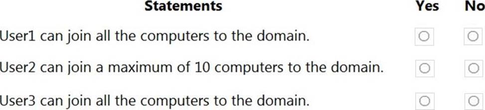 For each of the following statements, select Yes if the statement is true. Otherwise, select No. NOTE: Each correct selection is worth one point.