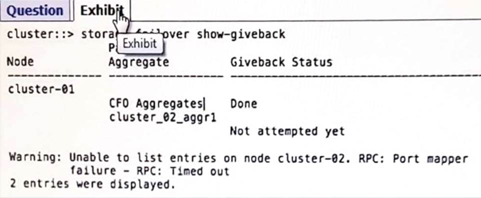 - A . The giveback failed because cluster-01 was not able to communicate with the partner’s cluster LIFs.