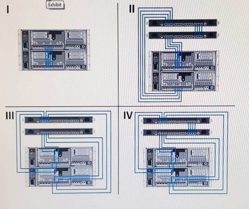 Referring to the exhibit, which two diagrams show the correct way to cable a new NetApp clustered Data ONTAP cluster with two nodes? (Choose two.)