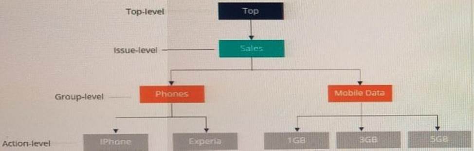 customers on its website. The company wants to present more relevant offers to customers based on customer behavior. The following diagram is the action hierarchy in the Next-Best-Action Designer.