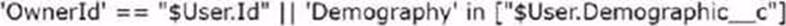 - B . The security predicate needs to be updated as ‘Ownerld’ == "sUser.id” || ‘Demography’ = "$User.Demographic__c’.