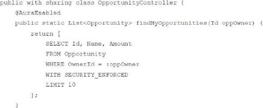 - B . Add @AuraEnabled to line 03.