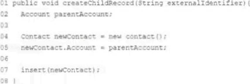 As part of an Integration development effort, a developer is tasked to create an Apex method mat solely relies on the use of foreign identifiers In order to relate new contact records to existing Accounts in Salesforce. The account object contains a field marked as an external ID, the API Name of this field is Legacy_Id_c.