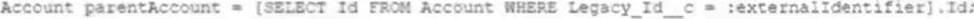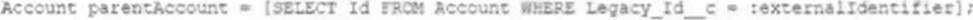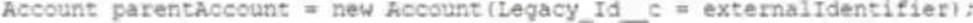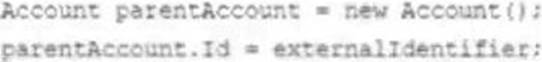 As part of an Integration development effort, a developer is tasked to create an Apex method mat solely relies on the use of foreign identifiers In order to relate new contact records to existing Accounts in Salesforce. The account object contains a field marked as an external ID, the API Name of this field is Legacy_Id_c.