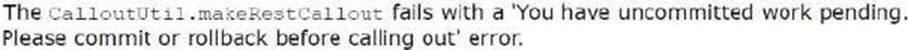 - D . Change the CalloutUtil.makeRestCallout to an @future method.