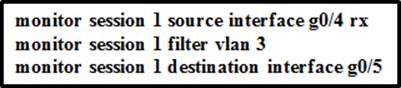 B . Configure a SPAN session to monitor the received traffic on interface g0/4 only for VLAN 3