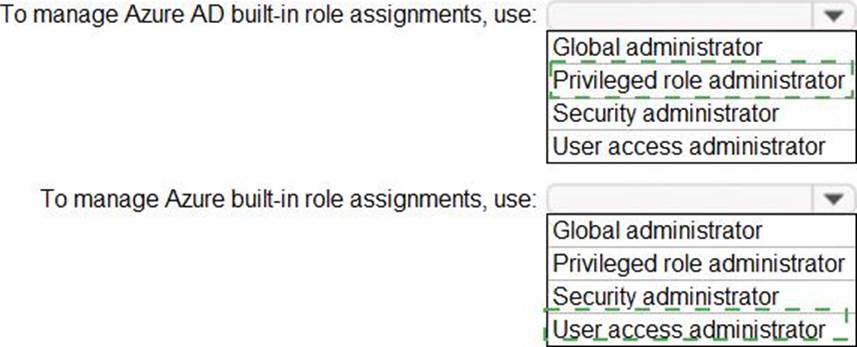 You need to identify which roles to use for managing role assignments. The solution must meet the delegation requirements.