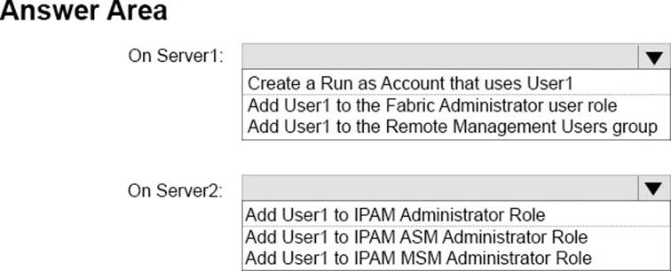 On Server1: Create a Run As Account that uses User1. On Server2: Add User1 to IPAM ASM Administrator Role. https://technet.microsoft.com/en-us/library/dn783349(v=ws.11).aspx