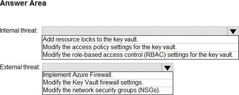 What should you recommend for each threat? To answer, select the appropriate options in the answer area. NOTE: Each correct selection is worth one point.