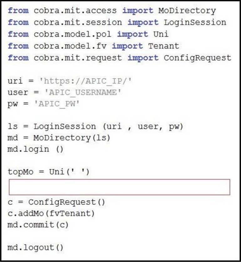 C . Tenant = Tenant(topMo, name=’Cisco’)