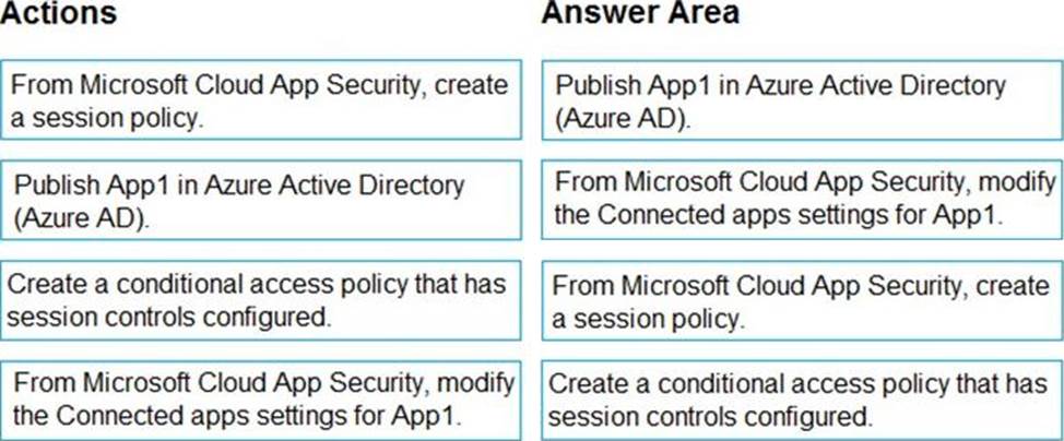 You need to enable real-time session-level monitoring of App1 by using Microsoft Cloud app Security.