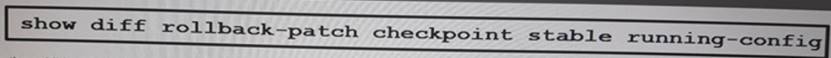 C . It performs a rollback to the specified checkpoint name or file based on the current differences in the running configuration